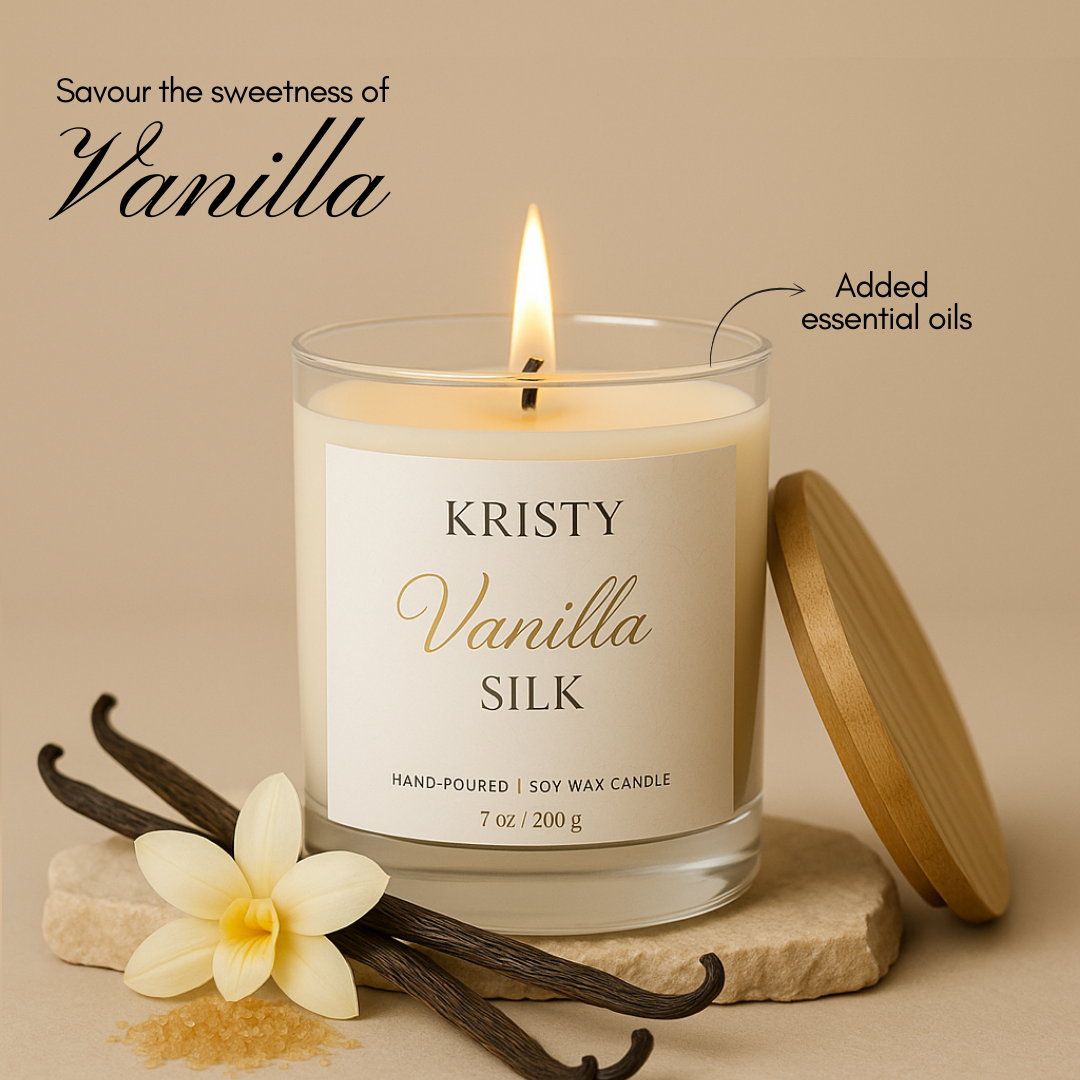 Wrap yourself in the indulgent coziness of our Vanilla Silk Candle, made with premium soy wax A++ and delicately blended with vanilla essential oil. Known for its creamy, sweet fragrance, vanilla has long been associated with warmth, comfort, and happiness — making this candle the perfect companion for relaxing evenings, intimate gatherings, or mindful moments of self-care.